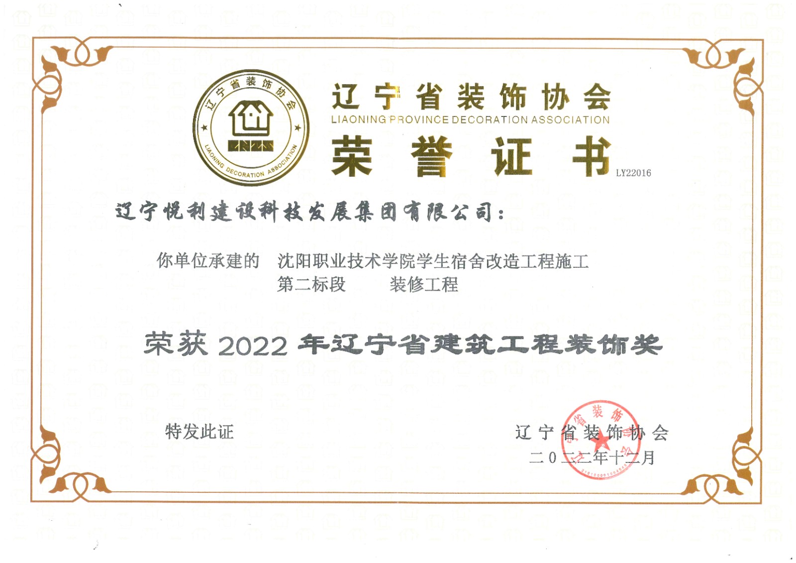 省-2022年辽宁省建筑工程装饰奖_沈阳职业技术学院学生宿舍改造工程施工第二标段